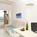 Έχει επίσης ηλεκτρικό βραστήρα, ψυγείο και σκεύη κουζίνας. Απέχει 10 λεπτά με το αυτοκίνητο από το αεροδρόμιο Κρατικός Μυκόνου. Μπορείτε να χρησιμοποιήσετε εξωτερική πισίνα στις εγκαταστάσεις. Μπορείτε να νοικιάσετε αυτοκίνητο.