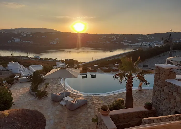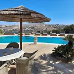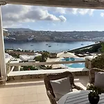A 10 szobás Navy Blue Suites Ornósz az Égei-tengerre néz, továbbá bútorozott erkélyt foglal magába úszómedencével. A Nammos étterem autóval 5 percre található a stílusos apartmantól, a Mikonosz repülőtér pedig körülbelül 10 perc alatt elérhető autóval.
